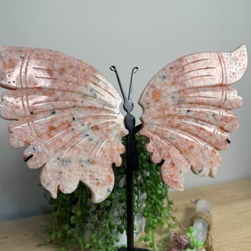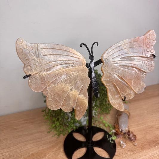 Peach Moonstone Butterfly Wings On Stand (U785)