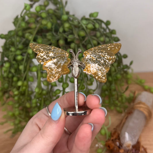 Citrine Butterfly Wings On Stand (E369)