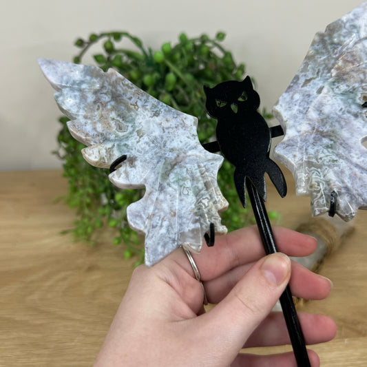 Ocean Jasper Owl Wings On Stand (M858)