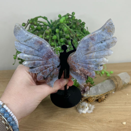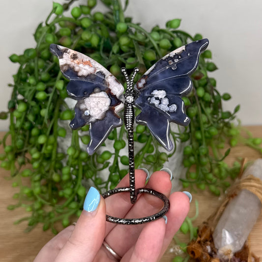 Blue Flower Agate Butterfly Wings On Stand (U808)